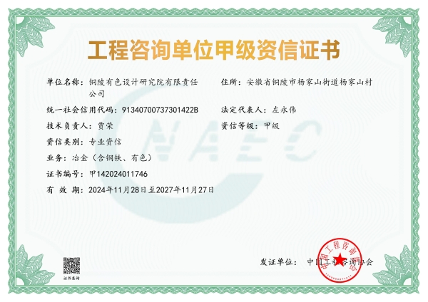 銅陵有色設計研究院有限責任公司(原銅陵有色設計研究院,以下簡稱“銅陵有色設計院”)成立于1956年,具有冶金行業工程設計甲級資質,建筑行業(建筑工程)、市政行業(道路工程、環境衛生工程)專業乙級設計資...